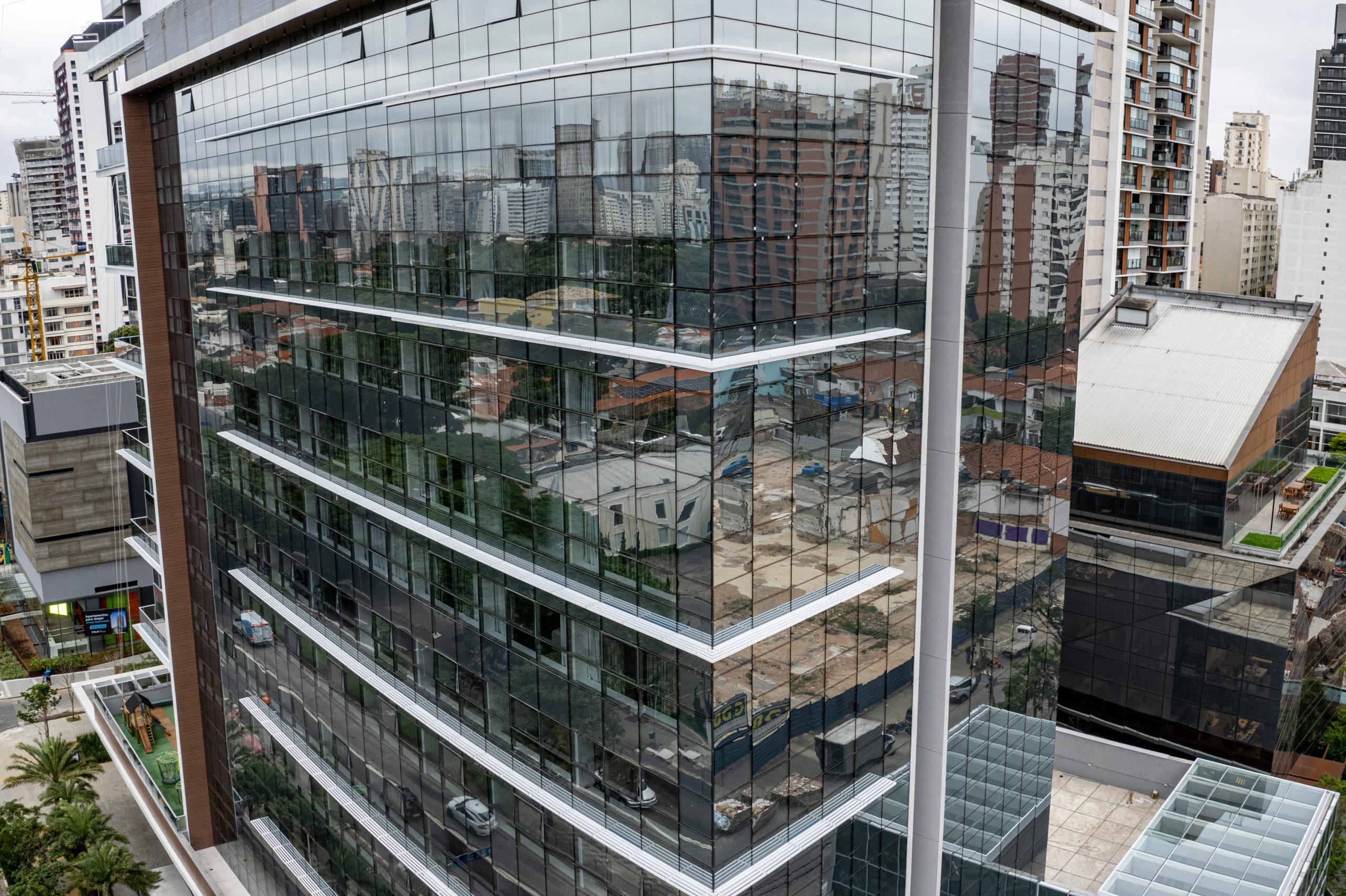 Para esse projeto foram especificados 8.700 m² de vidros laminados de controle solar prata